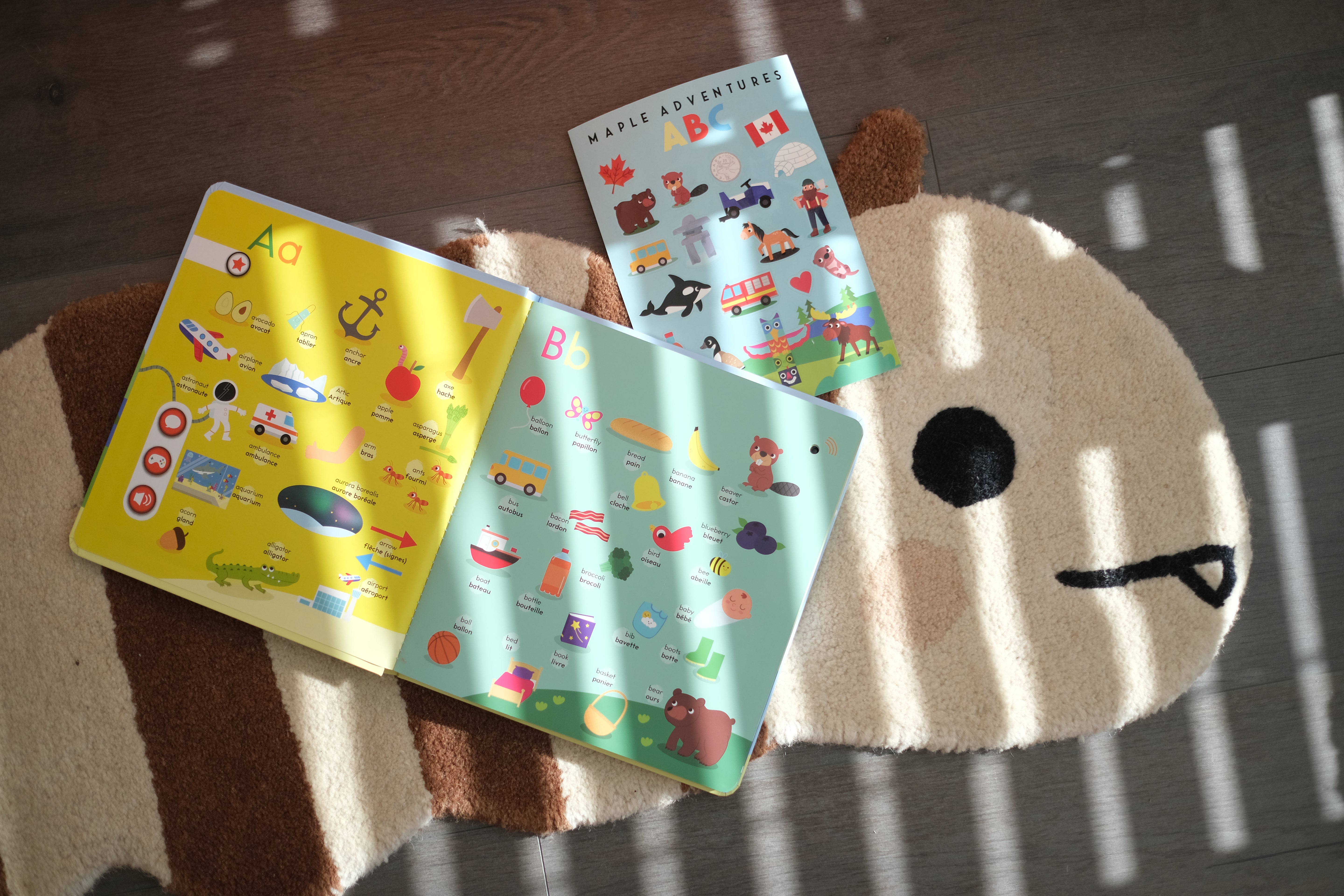 project—a Canadian-themed alphabet book with words in both English and French. Created with love and inspired by our kids, this book is our way of sharing a piece of home and heart with other families.