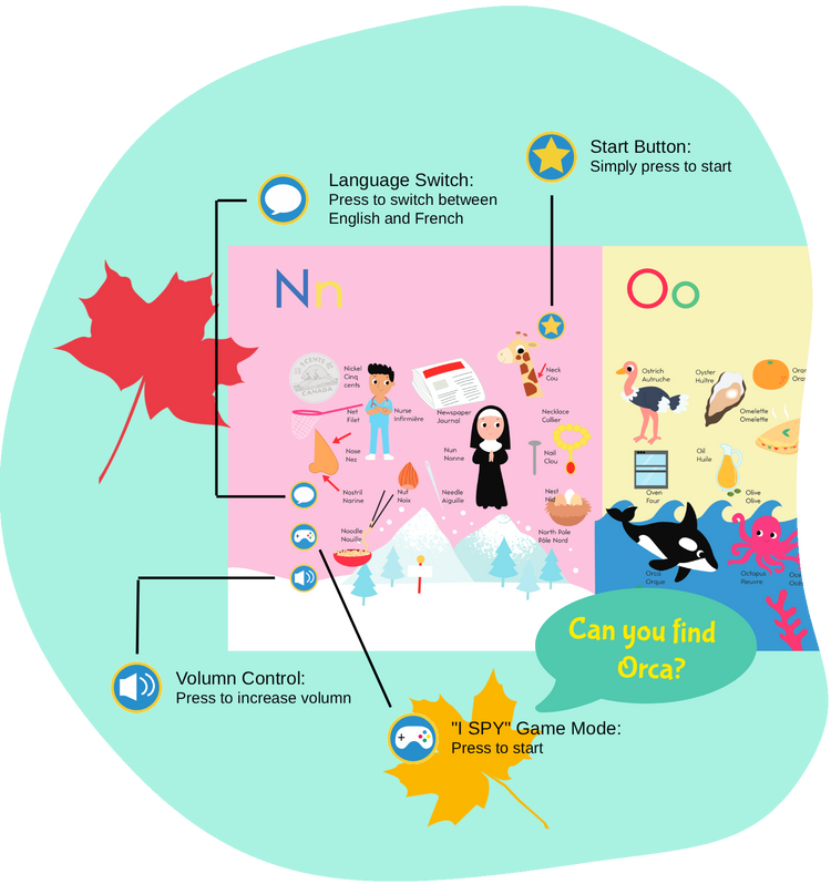 Designed in Canada, with unique words like Rocky Mountains and maple syrup, teaching kids about their heritage while building vocabulary in both official languages